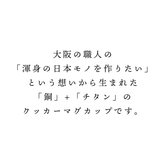 大阪の職人の「渾身の日本モノを作りたい」という想いから生まれた「銅」+「チタン」のクッカーマグカップです