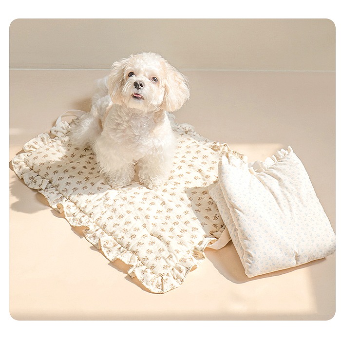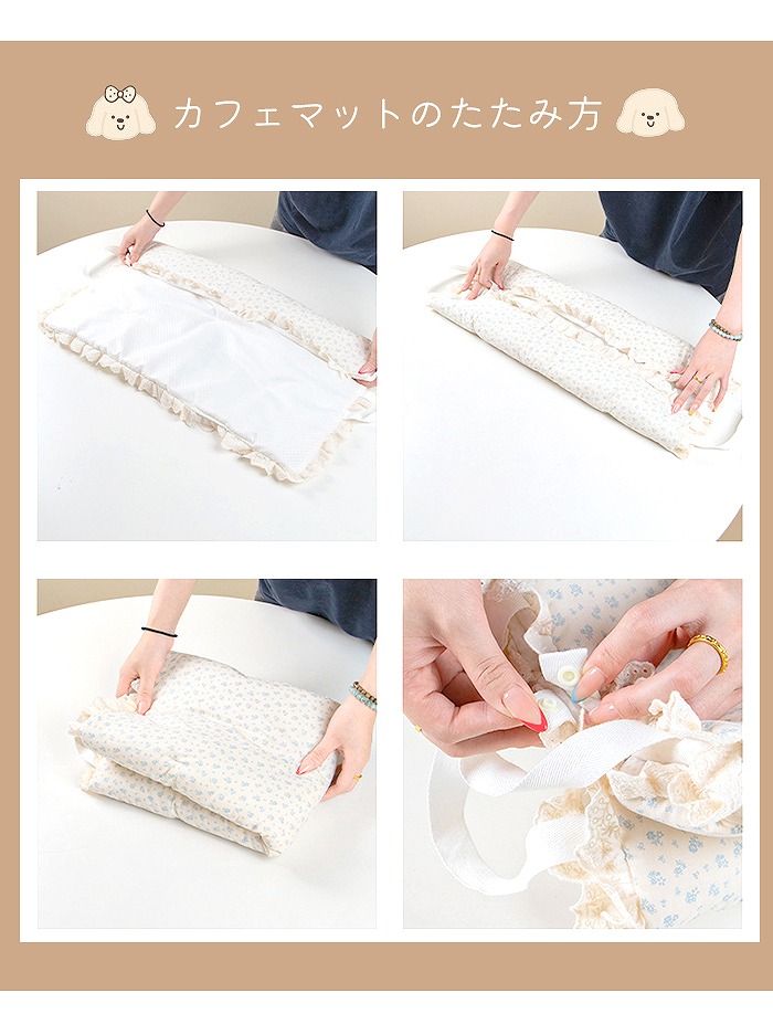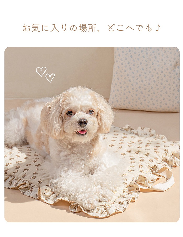犬 マット フリルカフェマット ステイマット ペットマット バギーマット カートマット 折り畳み 持ち手付き バギー 接触冷感 ひんやり 小花柄 キルティング ペットカート クールマット 可愛い レース 夏 カートアクセサリー 犬 猫 お出かけ プレゼント 送料無料 KM609G