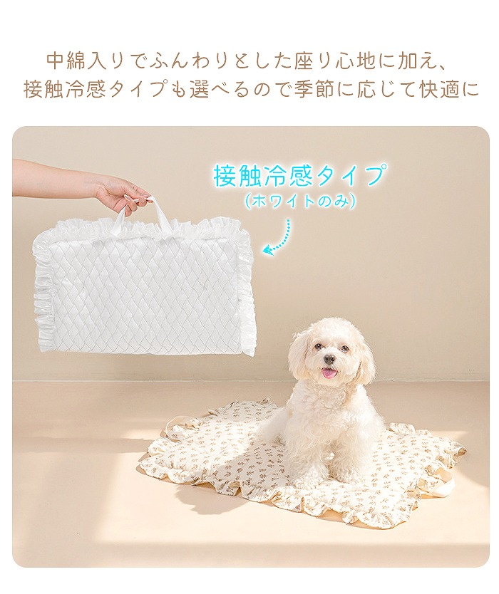 犬 ひんやりマット 夏 フリルカフェマット ステイマット ペットマット バギーマット カートマット 折り畳み 持ち手付き バギー 接触冷感 ひんやり 小花柄 キルティング ペットカート クールマットkm609g