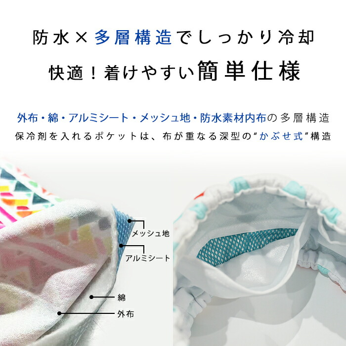 保冷剤を入れるポケットは、布が重なる深型の“かぶせ式”構造。