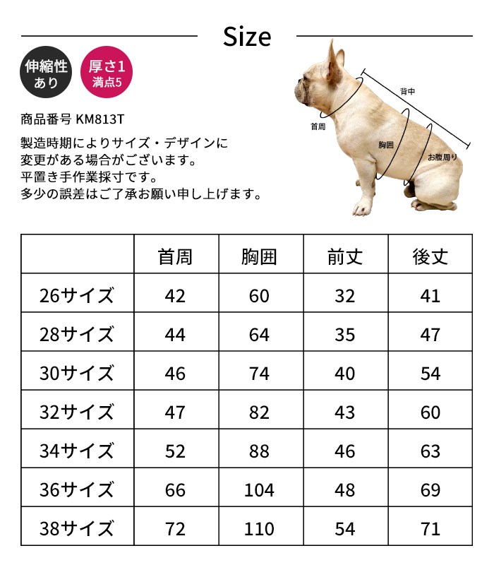 38サイズ 首周72/胸囲110/前丈54/後丈71