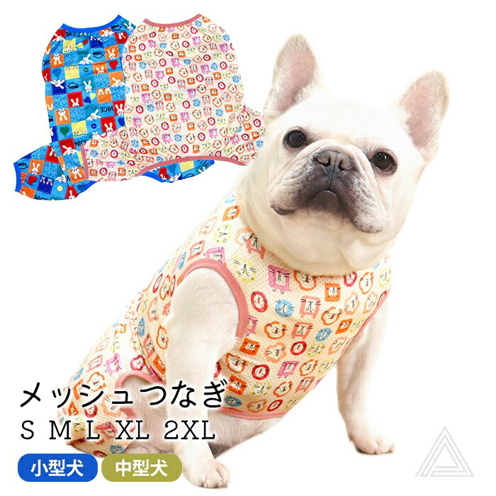 犬服 メッシュ つなぎ 夏 春 フレンチブルドッグ パグ 中型犬 小型犬 フレブル ブルー ベージュ 通気性 犬 服 メッシュ素材 ドッグウェア ペット服 皮膚保護 カラフル KM831OPkm831op