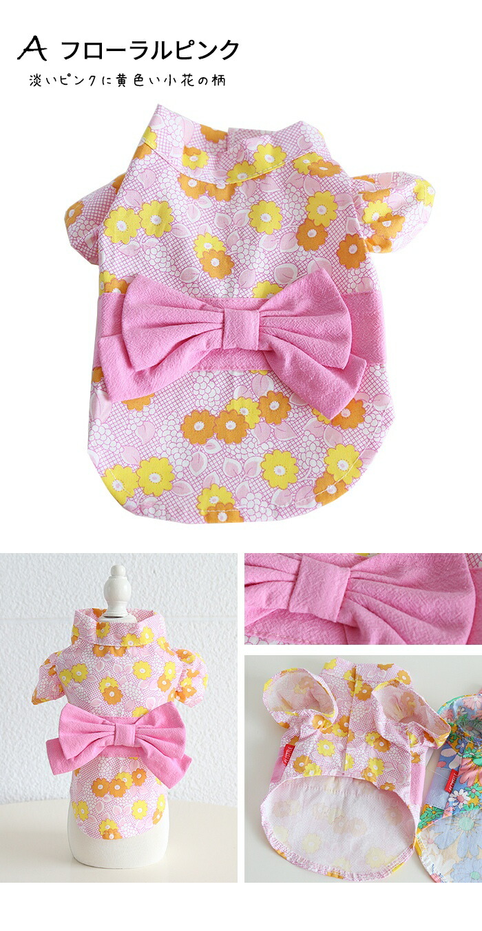犬服 ゆかた 浴衣 マジックテープ 犬 猫 服 可愛い 花柄 和風 薄手 チワワ トイプードル フレブル 小型犬 中型犬 ペット浴衣 着物 和装 夏祭り ペット ペット服 和服 和柄 記念撮影 ドッグkm839ts