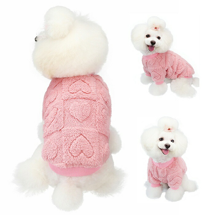 ペット服 ボア Tシャツ もこもこ 可愛い ハート フレンチブルドッグ フレブル 冬服 もこもこ フワモコ 犬 服 ドッグウェア 秋 冬 暖かい 犬 服 犬の服 ペットウェア 猫服 暖か 極暖 防寒km871ts