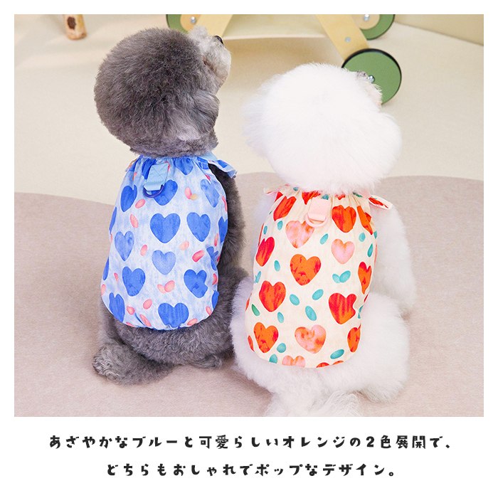 1000円ぽっきり 小型犬 キャミソール 可愛い スカート ハート柄 トイプードル チワワ マルチーズ ポメラニアン犬服 薄手 犬 春 夏 おしゃれ ドッグウェア 撮影 誕生日 送料無料 ブルー オレkm877t