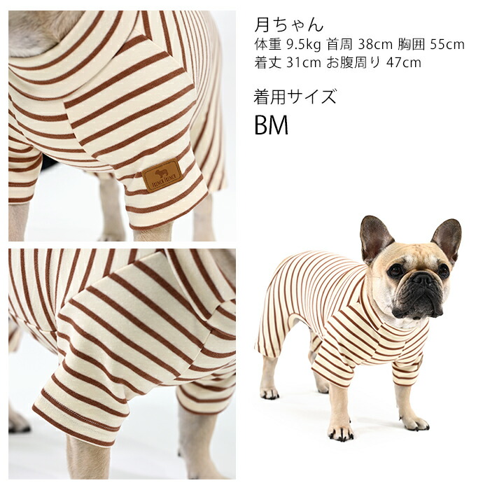 【当社オリジナル】犬服 秋 冬 ロンパース フレブル 暖かい オールインワン ボーダー柄 かわいい おしゃれ ルームウェア 抜け毛防止 抜け毛対策 パジャマ ペット服 つなぎ パピー服 パピー 子犬km902ts