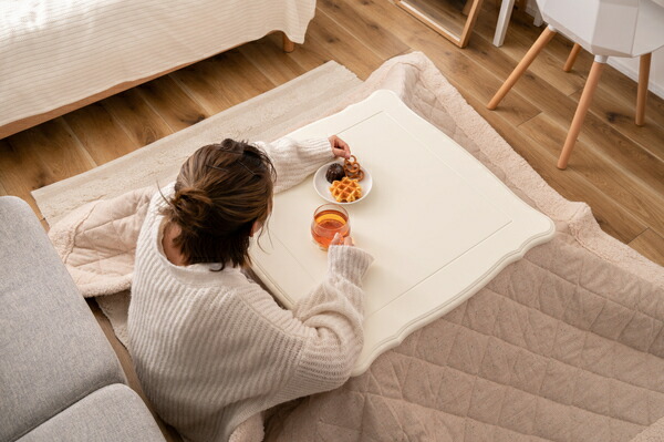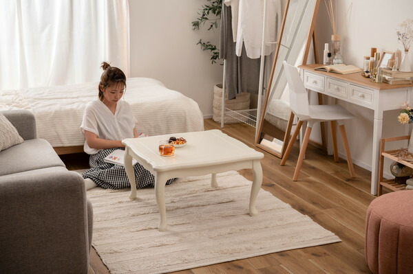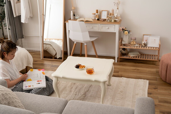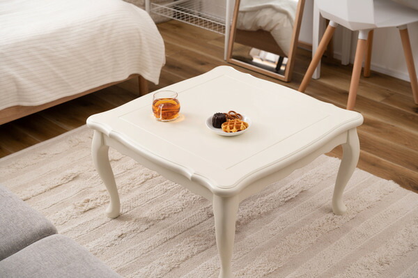 【検索キーワード】こたつ 石英管ヒーター テーブル 猫脚 おしゃれ ガーリー 白 ホワイト スイッチ シンプル オールシーズン 木製 天然木 やぐら 一人暮らし リビング ソファ 座椅子