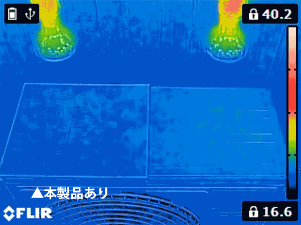 A:本品を使っていない場合との室外機天板の温度差を表しております。