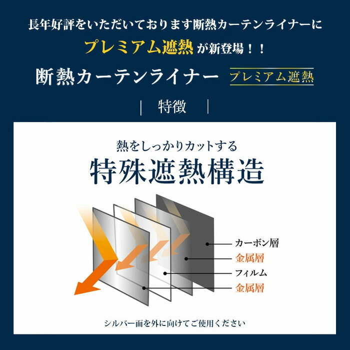 日本製 断熱カーテンライナー プレミアム UVカット率99% 遮光率99% 断熱 防カビ 断熱カーテン ビニールカーテン 遮光カーテン シルバー 暑さ対策 西日対策 100×140cm 100×225mwg-002