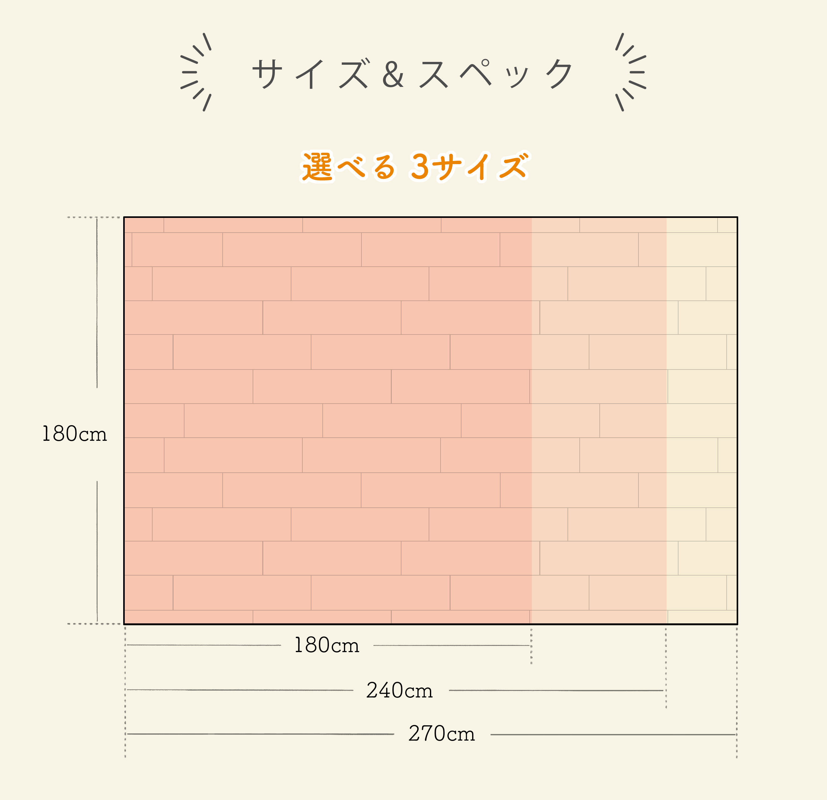 サイズ 180cm×180cm.180cm×240cm.180cm×270cm