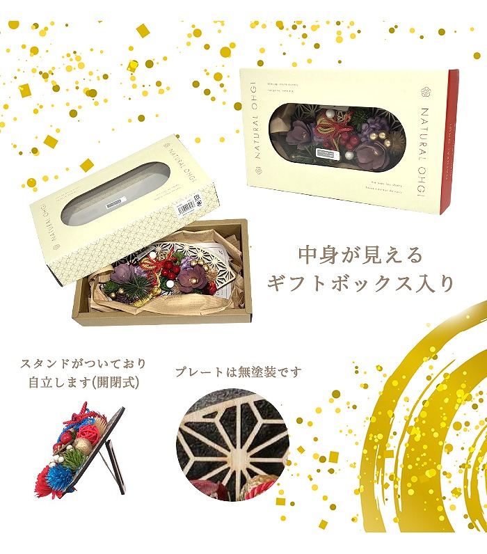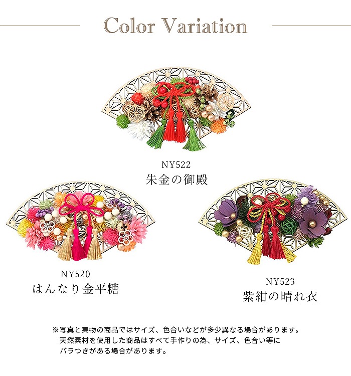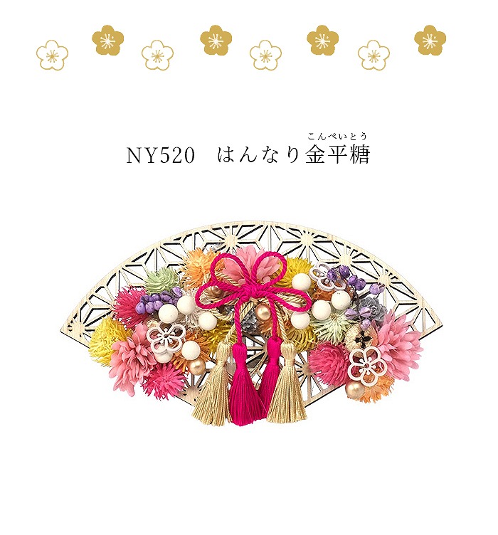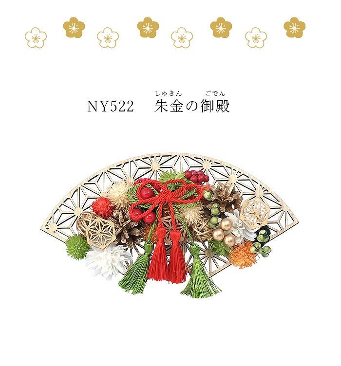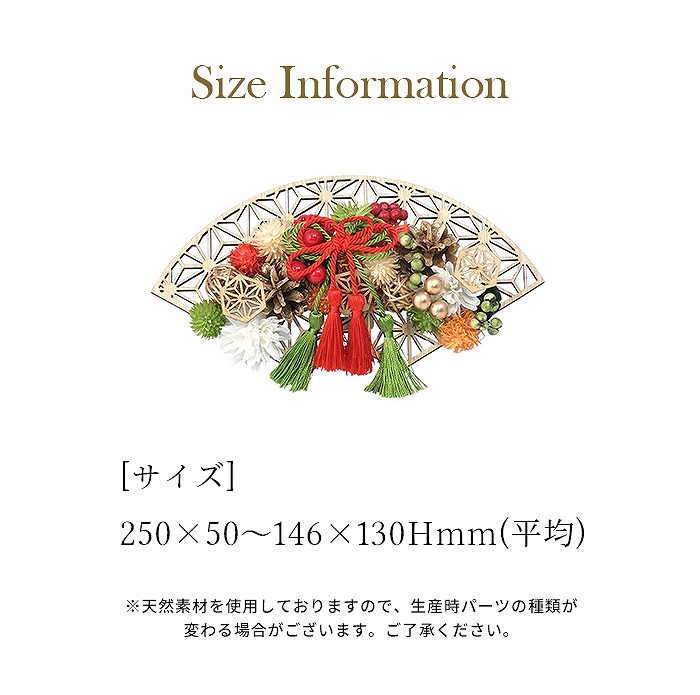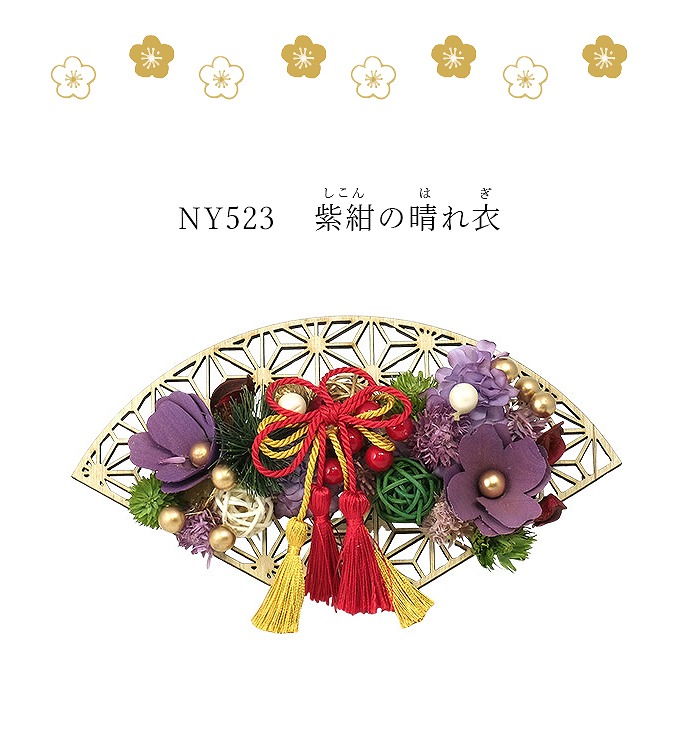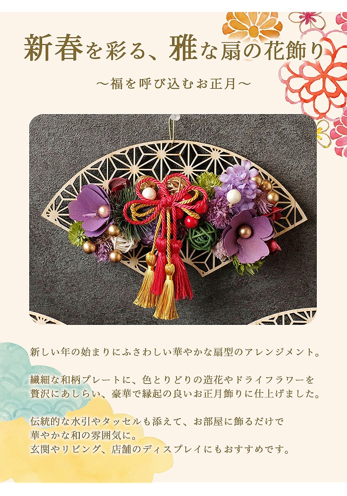 新しい年の始まりにふさわしい華やかな扇型のアレンジメント。