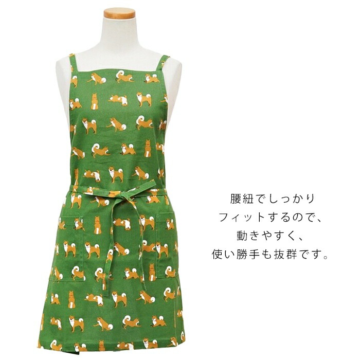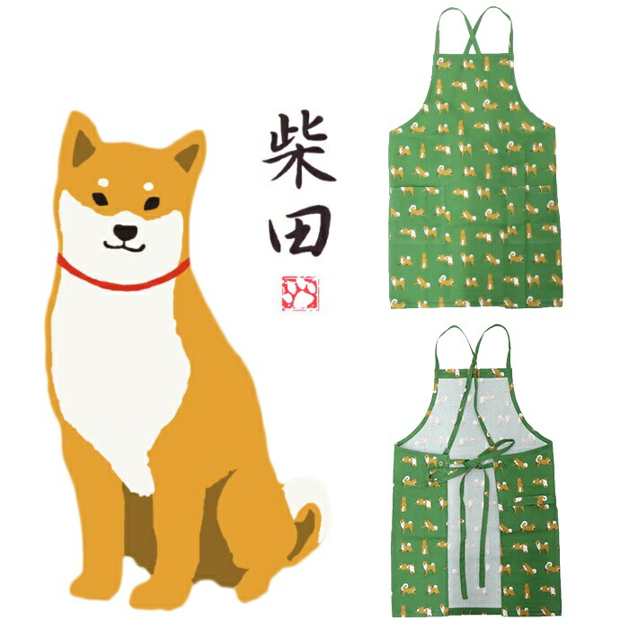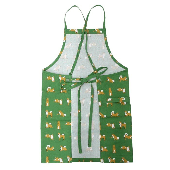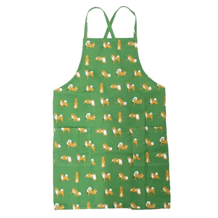 柴犬 エプロン 綿100% シバタサンズショートエプロン 柴田さん ポケット グッズ 雑貨 グリーン 総柄 可愛い SHIBA しば犬 しばたさん キッチン ショート丈 保育士 レディース 大人 プレpetj848221