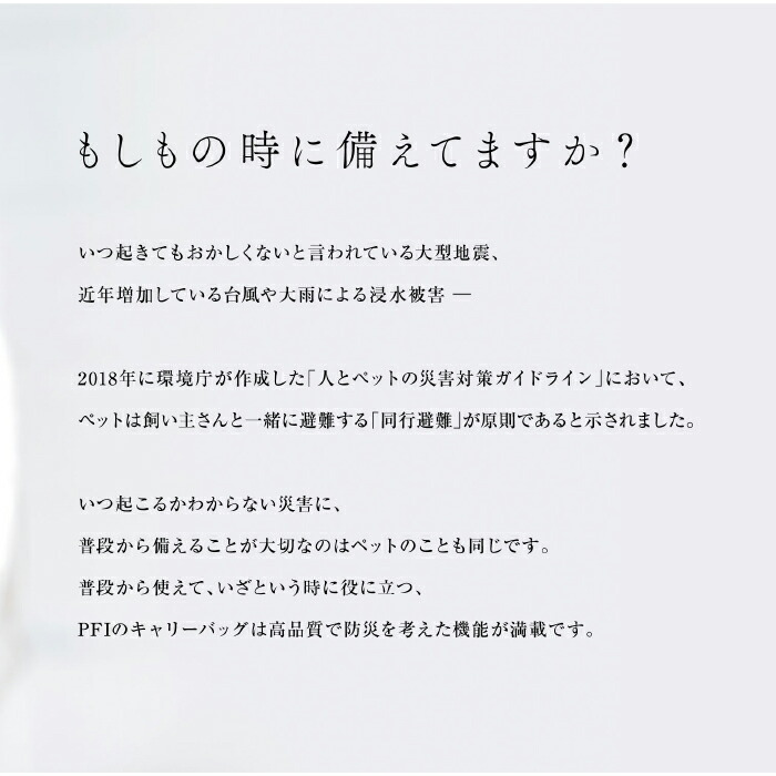 | キーワード | PFI Pet Frends Industry 普段から使えるペット防災グッズ 朝日加工 朝日加工株式会社 布 生地 専門 プロ仕様 高機能 高品質 防災 工場 染め 縫製 一貫生産 ペット防災 |