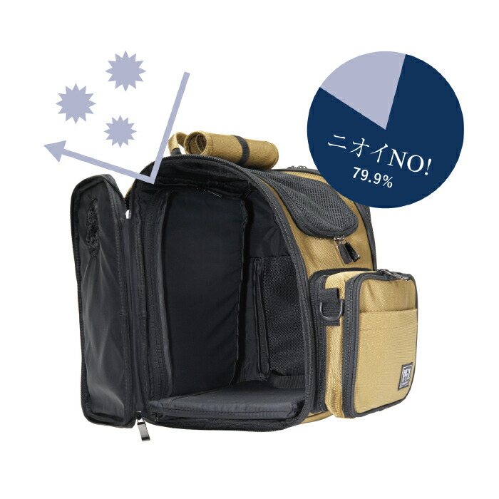 | Material – 素材 | 【本体】 表生地:ナイロン弱撥水加工 (1680DPUコート) 裏生地:ナイロン平織・制菌糸混織 (210D) +デオドラント加工 【芯材】 【背面生地】 |