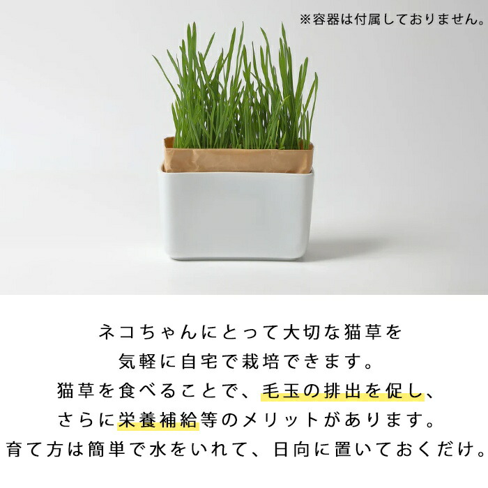 ネコちゃんにとって大切な猫草を気軽に自宅で栽培できます。