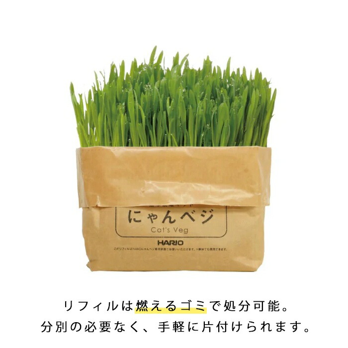 土の代わりに再生粉砕パルプを使用した猫草栽培キット。