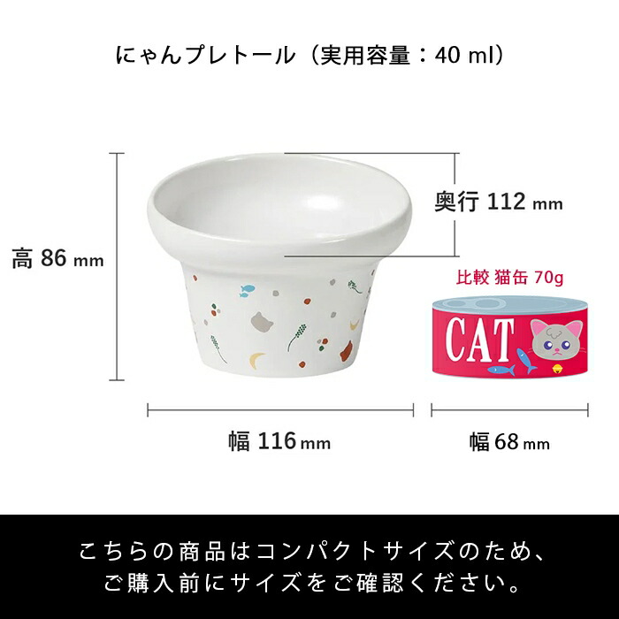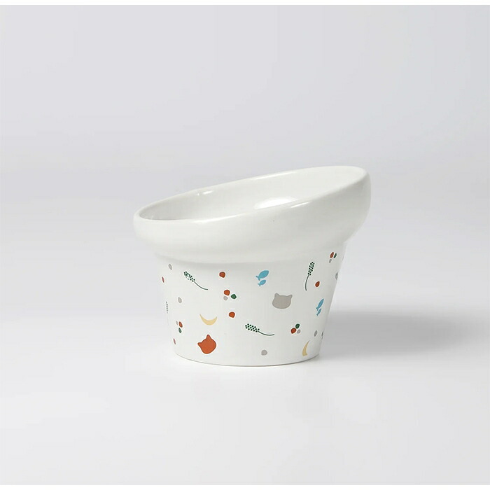猫じゃらしや魚など、猫が大好きなモチーフをちりばめたプリント柄が、食事タイムを楽しく演出します。