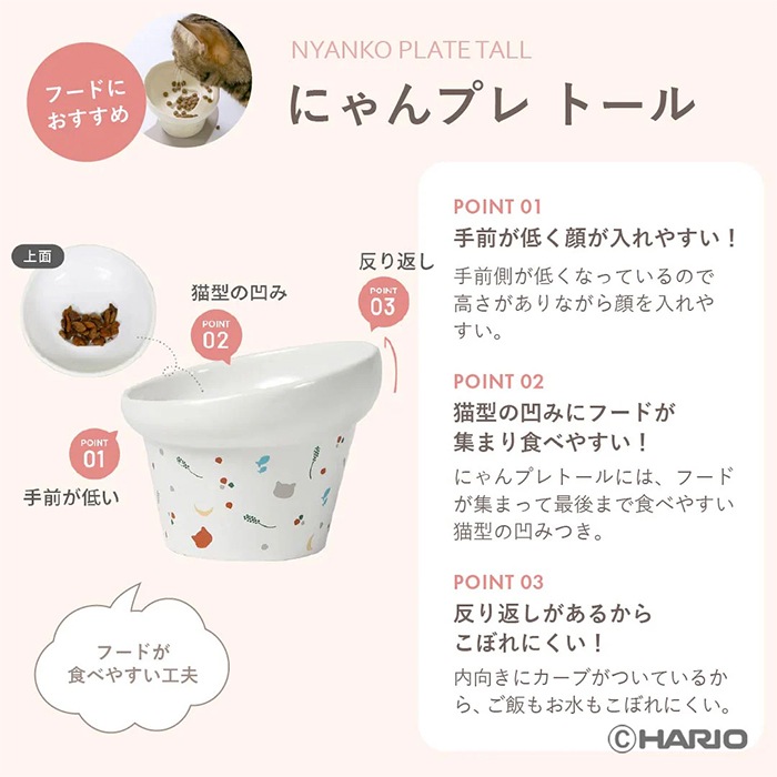 ハリオ HARIO にゃんプレトール 猫 お皿 フードボウル 食べやすい 高さがある おしゃれ 陶器 食器 餌入れ ペット 猫用食器 傾斜 斜め 猫皿 餌皿 ご飯台 餌台 食器台 エサ入れ 水 ねこpts-nyt