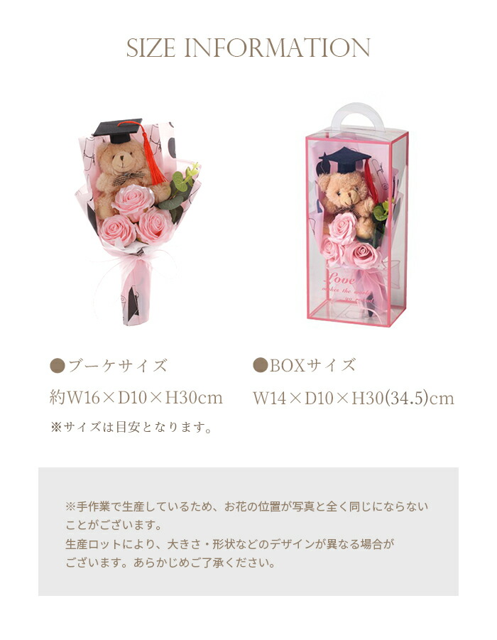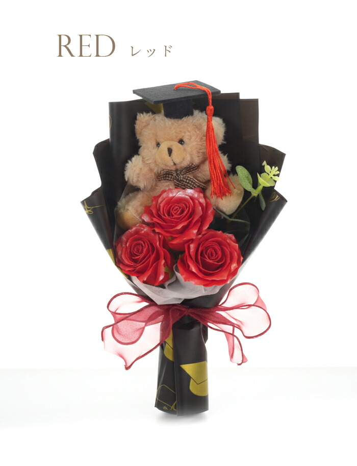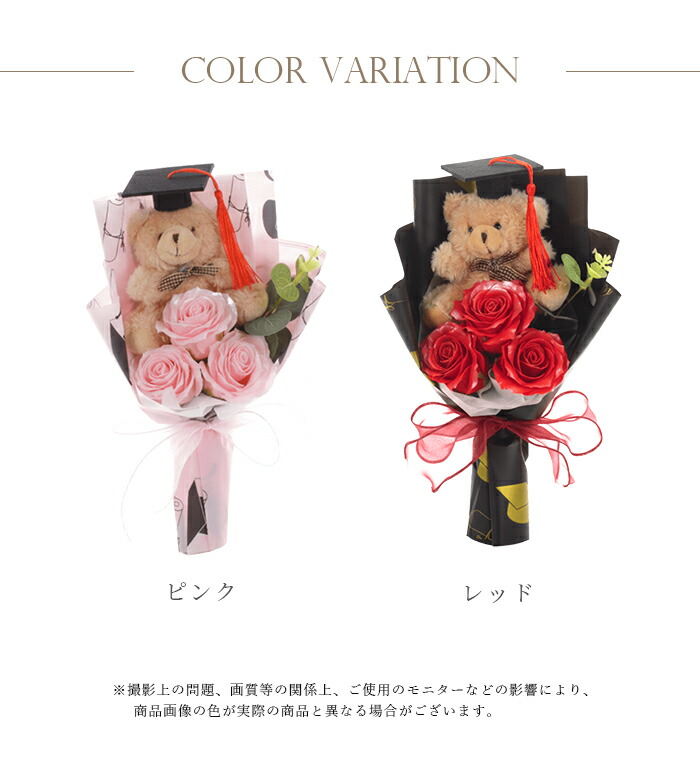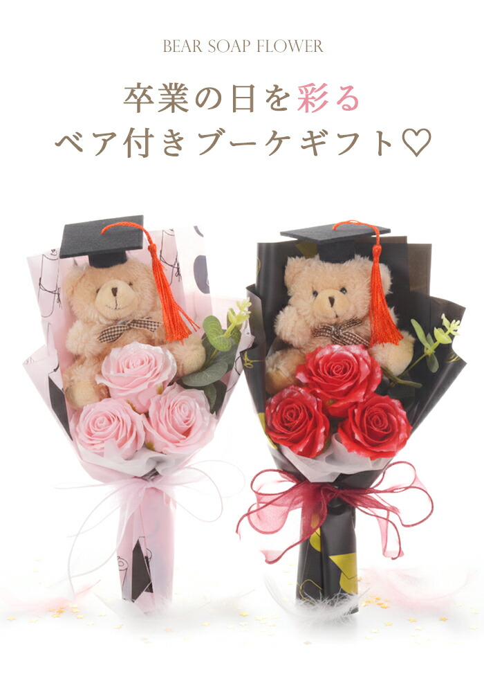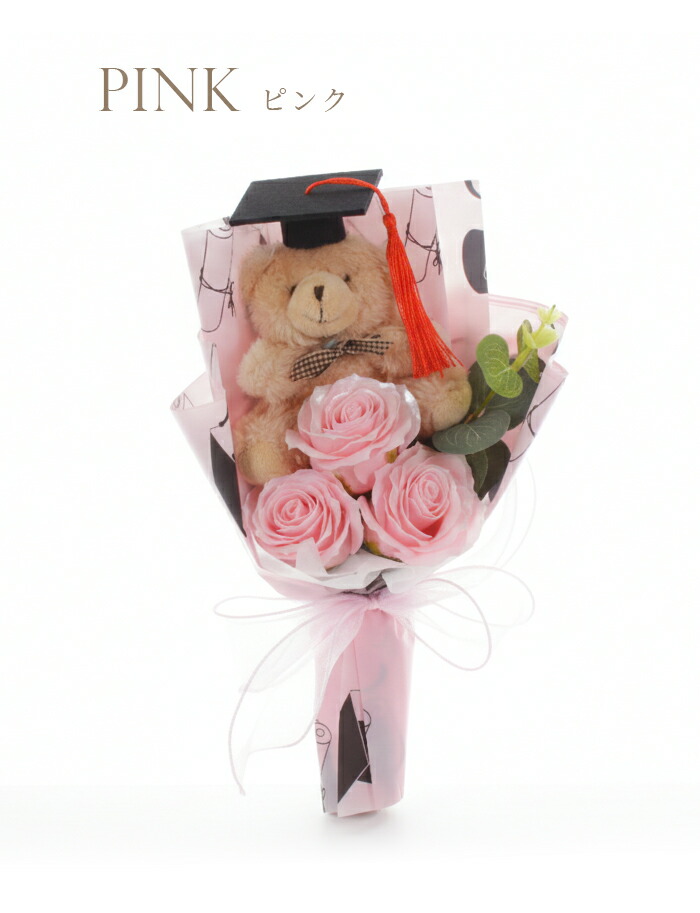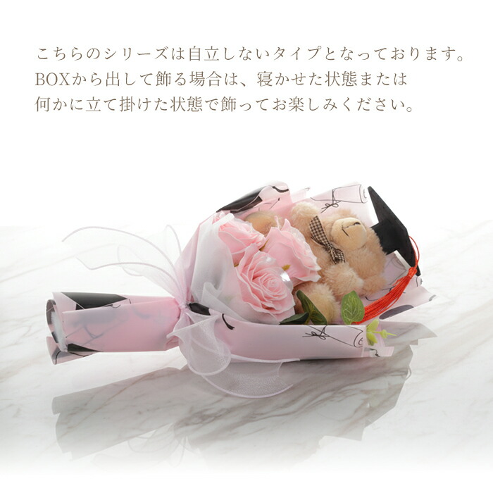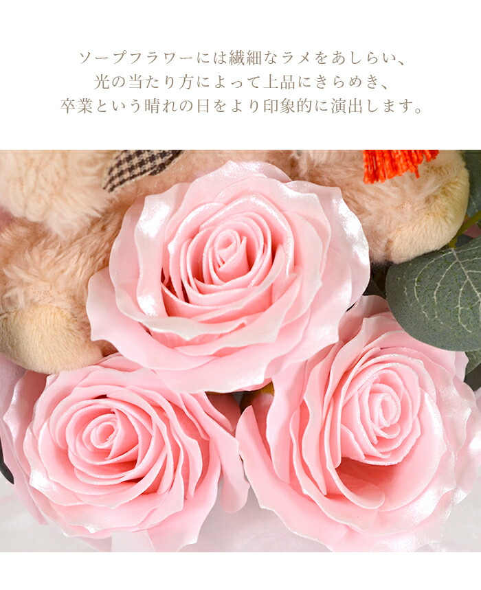 クマ付きソープフラワーブーケです。