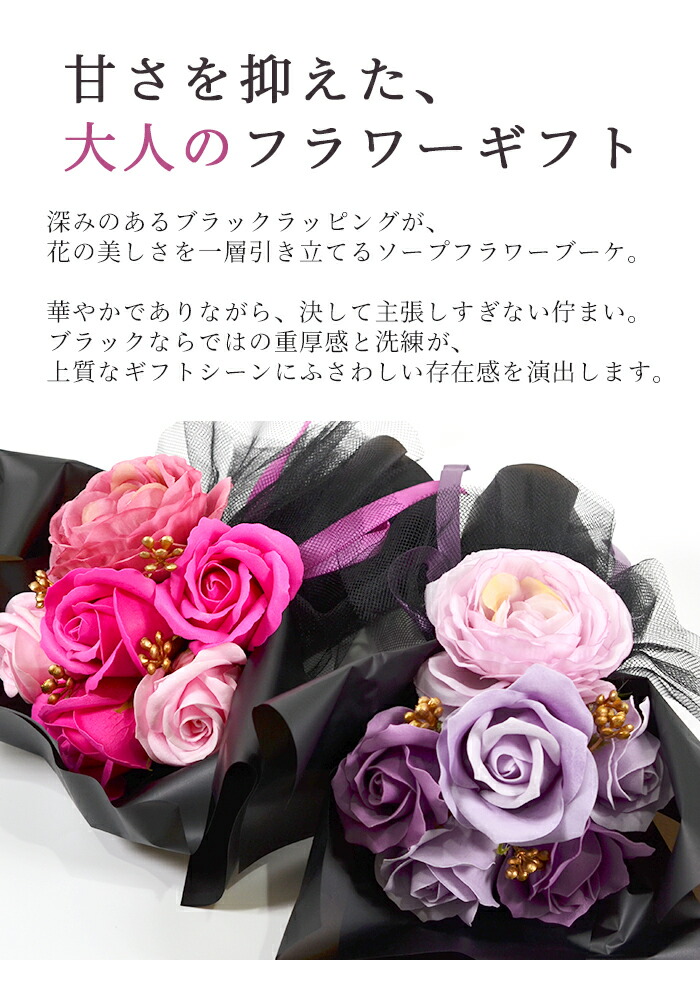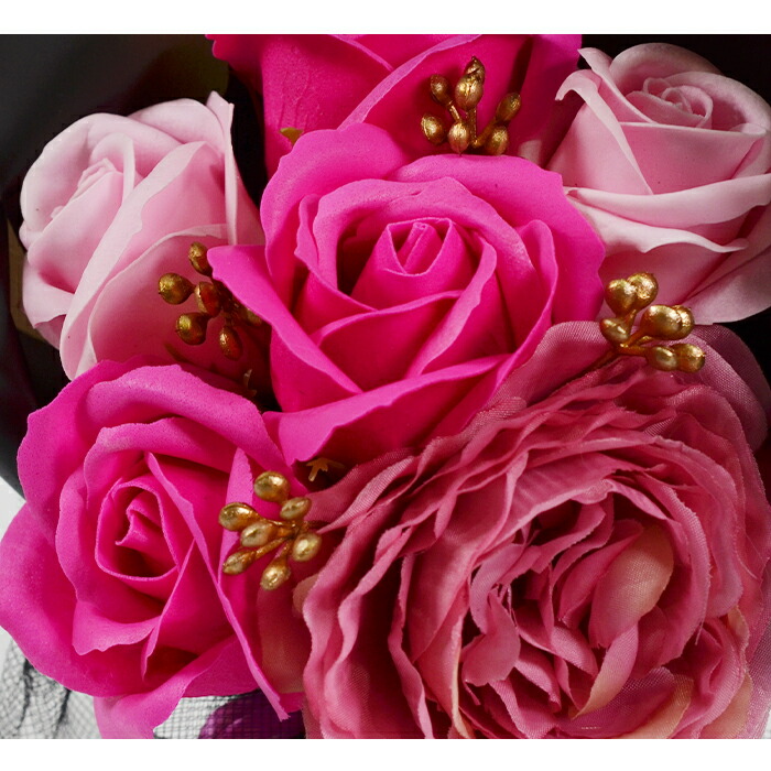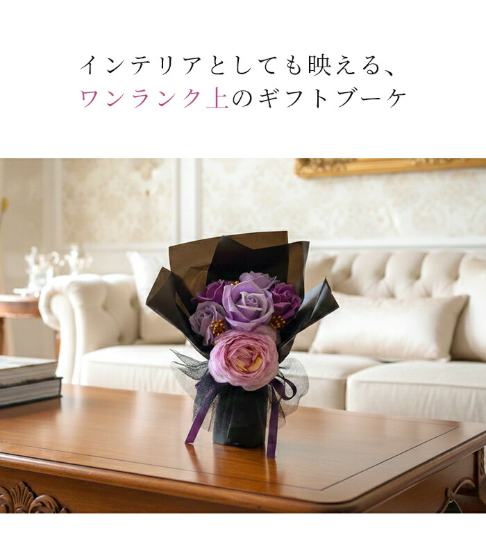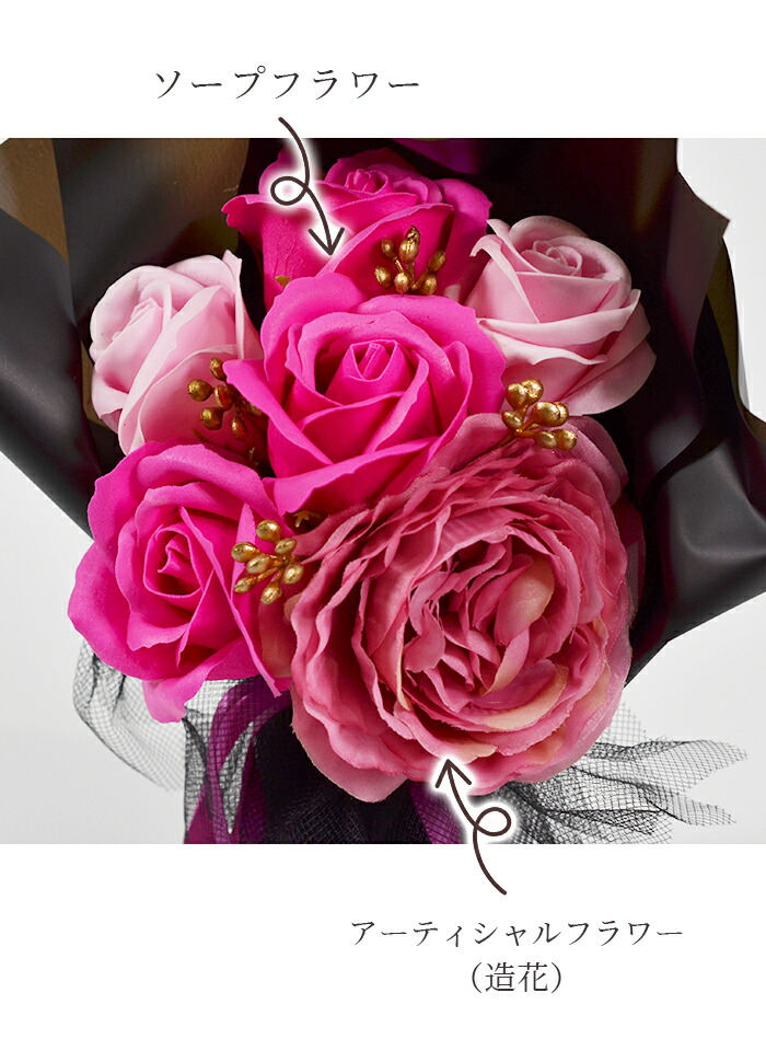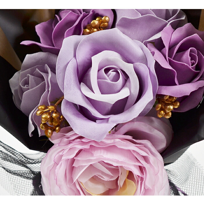 花の美しさを一層引き立てるソープフラワーブーケです。