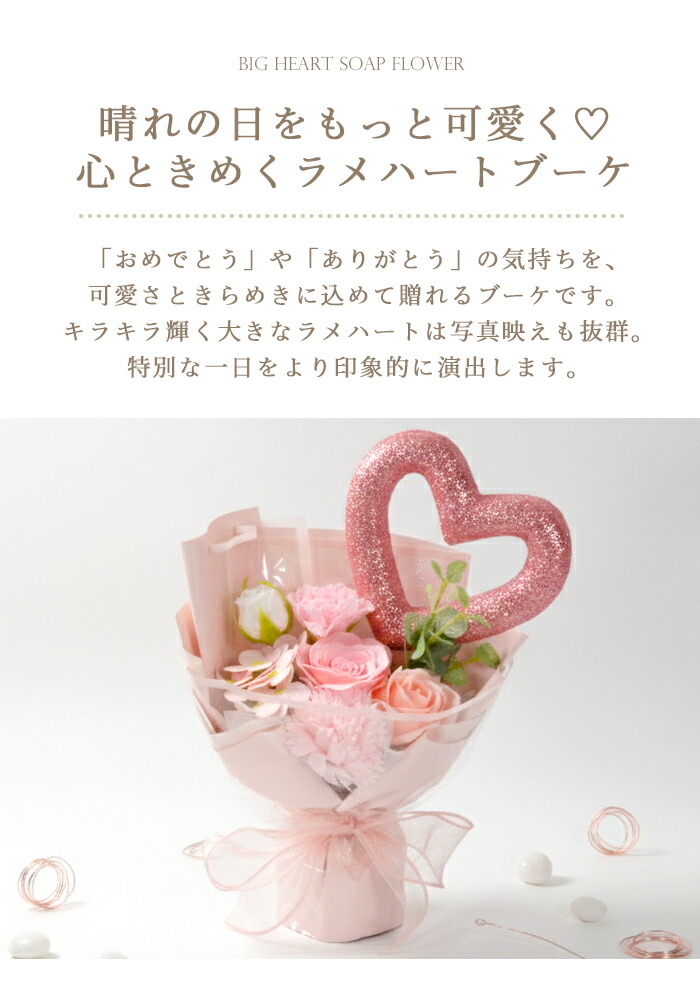 ソープフラワー ブーケ 花 プレゼント ビッグハートソープフラワーブーケ グリッターハート 卒業式 入学式 誕生日 母の日 出産祝い 退職祝い クリスマス おしゃれ 可愛い 推しカラー ホワイトデーsf-5576