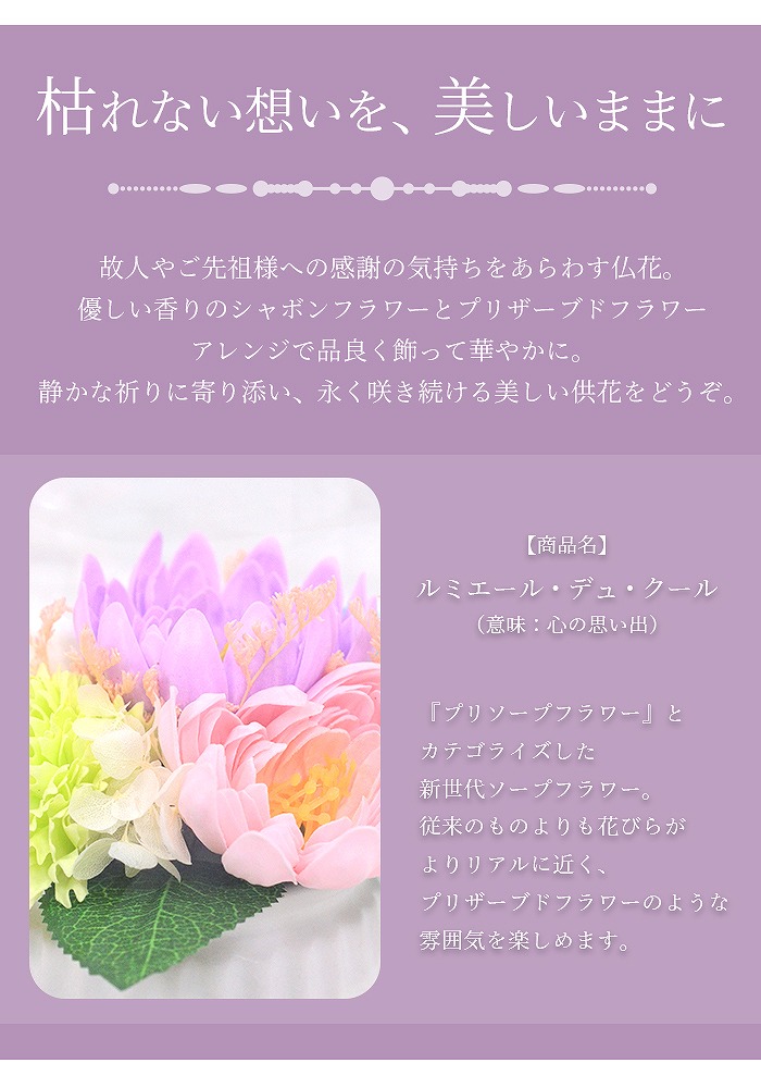 ソープフラワー 仏花 お供え花 シャボンフラワー プリソープフラワー プリザーブドフラワー 石鹸素材 枯れないお花 仏壇用 ペットお供え ルミエール・デュ・クール 心の思い出 お供え お悔やみ 供花sf-am25lcw