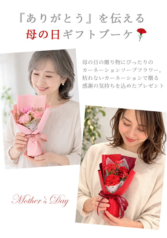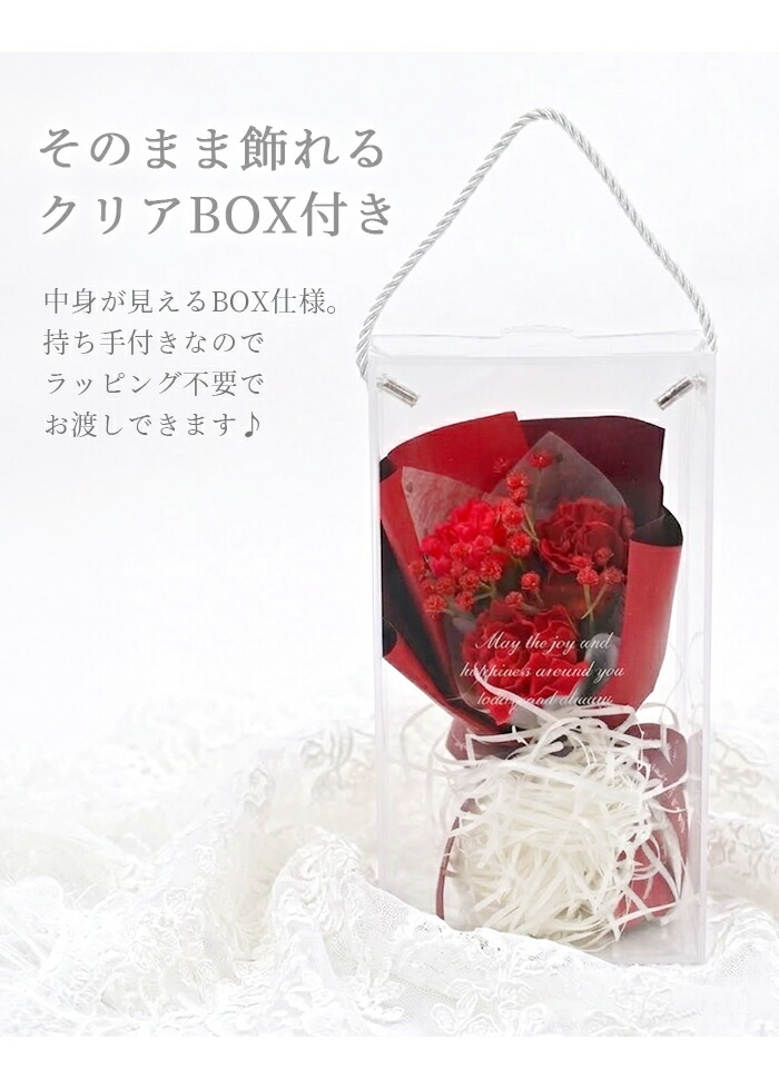 母の日 ソープフラワー プレゼント 花 カーネーション ソープブーケ BOX入り クリアボックス付き 花束 ブーケ 誕生日 ギフト 記念日 お母さん 母親 義母 贈り物 感謝 可愛い ピンク レッドsf-cw5116