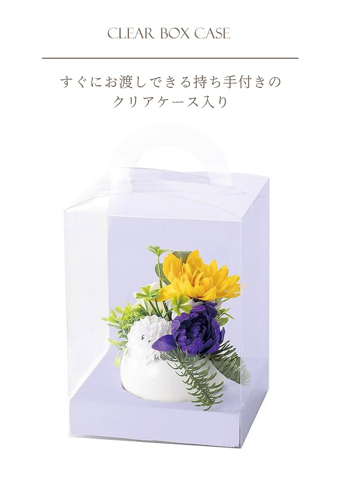 すぐにお渡しできる持ち手付きのクリアケース入り