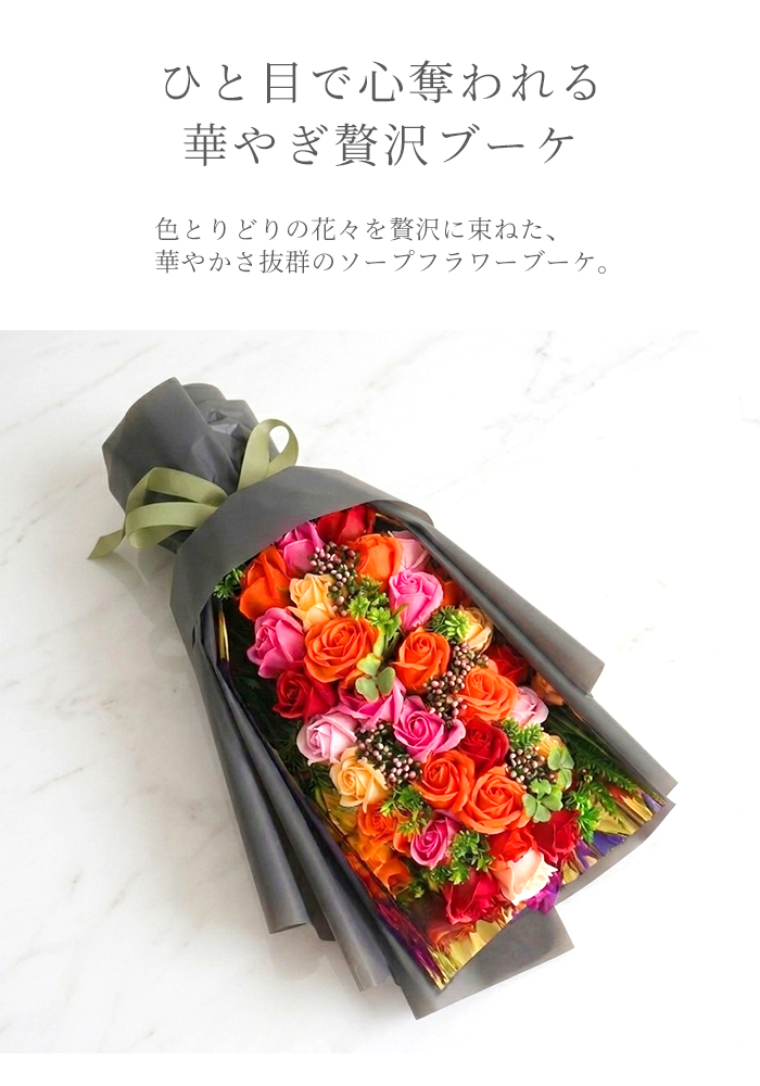 ソープフラワー ブーケ プレゼント カラーシャボンフラワーブーケ ビッグブーケ 大きめ 花束 ボックス付き 母の日 敬老の日 ギフト 枯れない花 バラ ソープ 豪華 華やか カラフル 誕生日 お礼 おsf-gm-3966-mix
