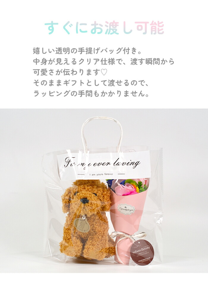 中身が見えるクリア仕様で、渡す瞬間から可愛さが伝わります♪