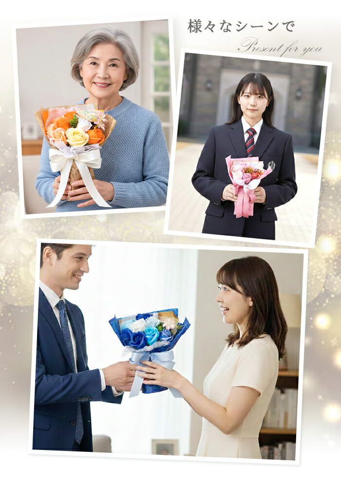 ソープフラワー ブーケ 花束 プレゼント 花 6色 手提げ袋付き エレガントシャボンスタンドブーケ ソープブーケ 枯れない花 入学式 卒業式 誕生日 母の日 お祝い 成人式 ホワイトデー 退職祝い 可sf-gm-4654