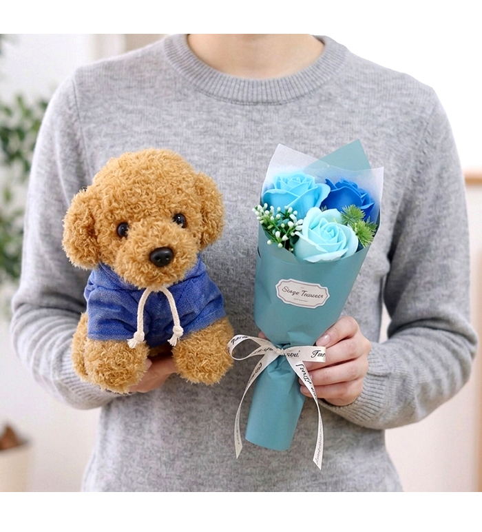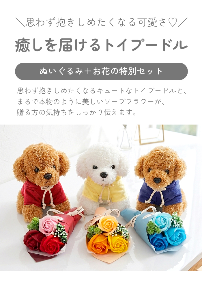 ふわふわで可愛らしいトイプードルのぬいぐるみと、