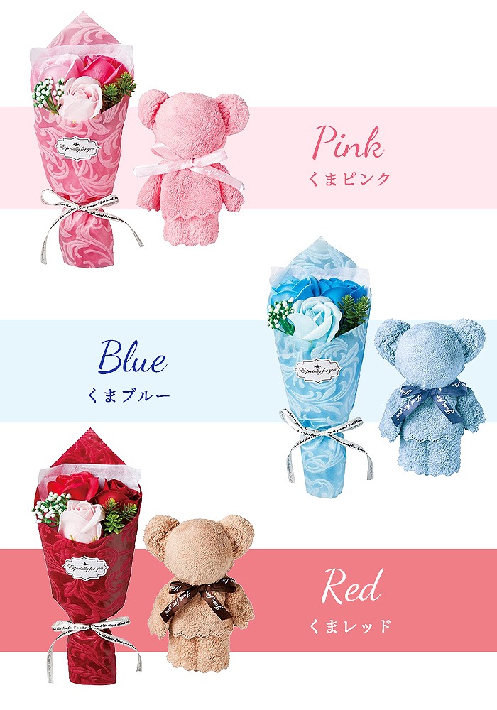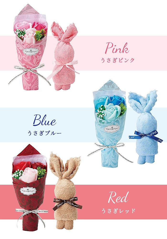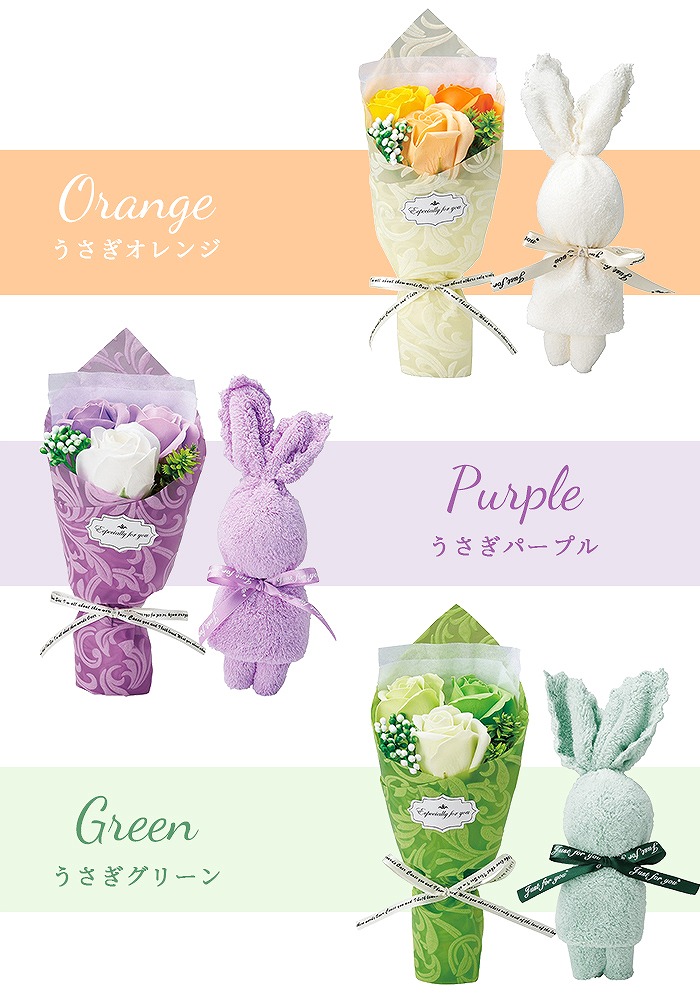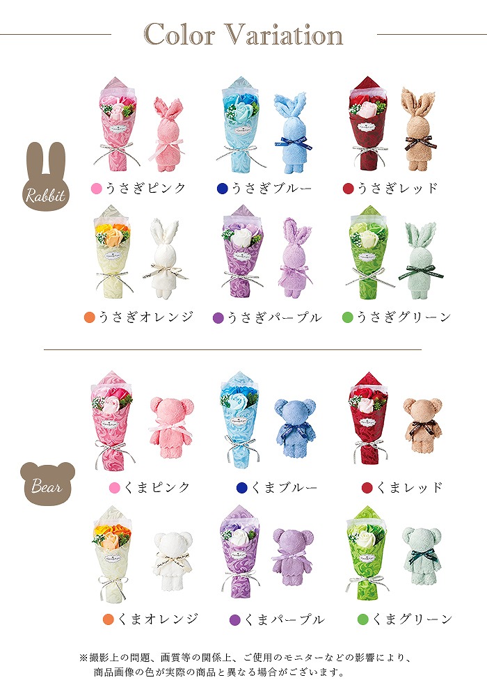 【商品名】ウサギ/クマ タオル&シャボンフラワーセット