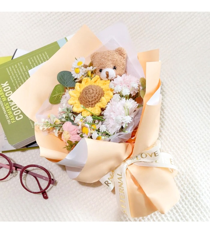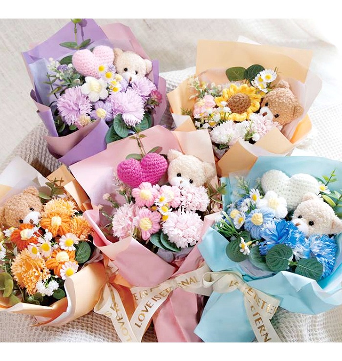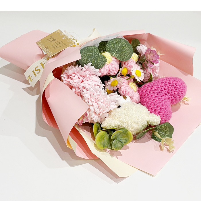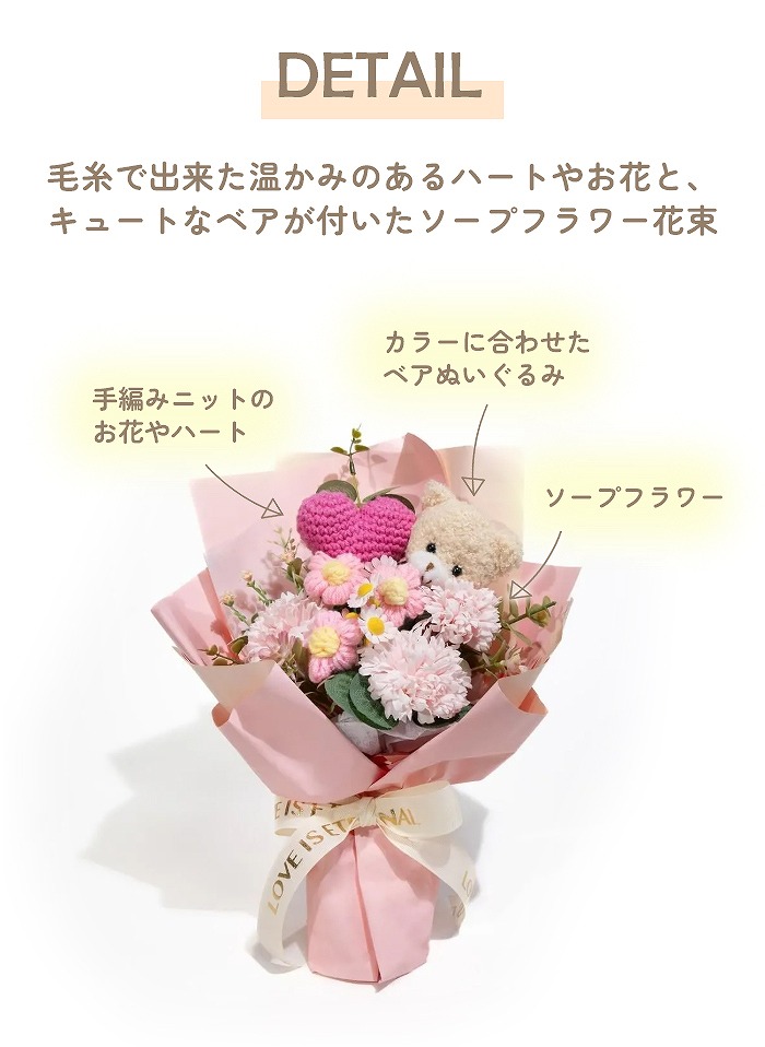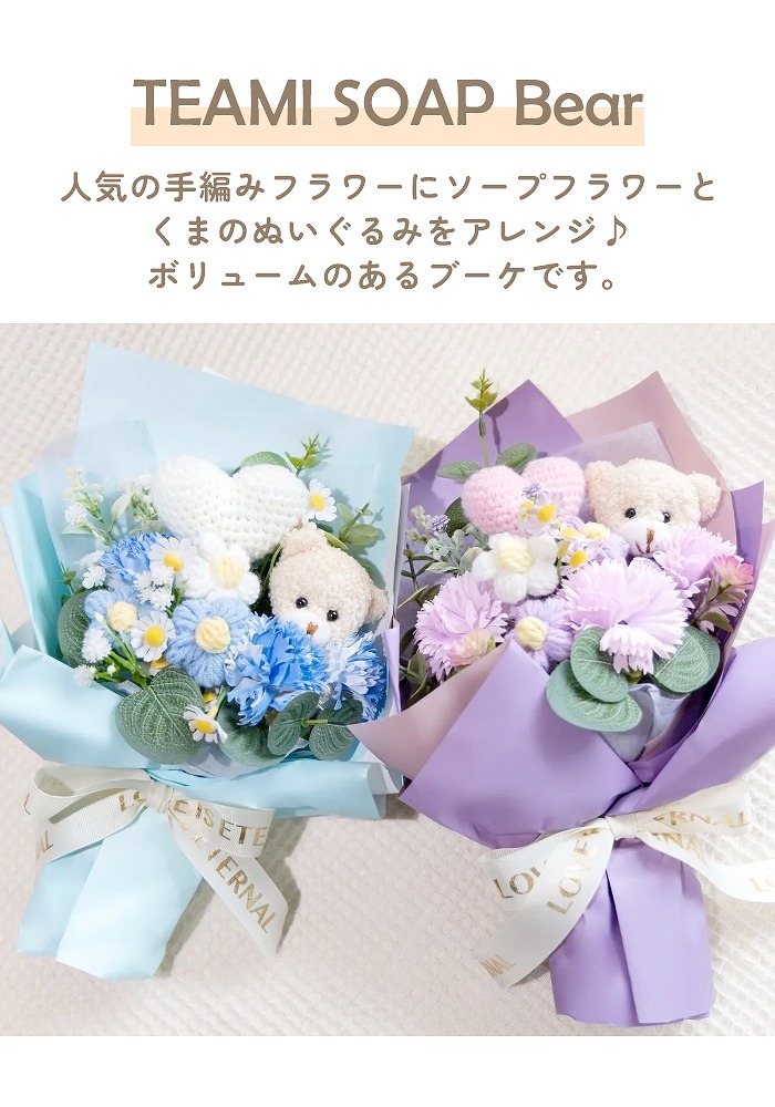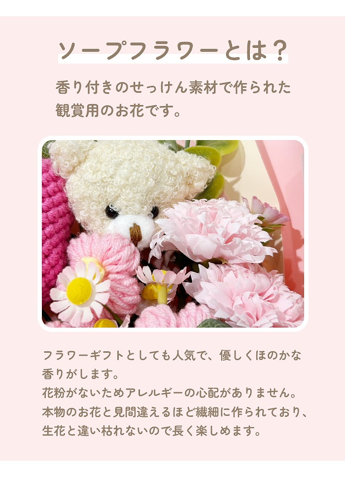 キュートなベアが付いたソープフラワー花束