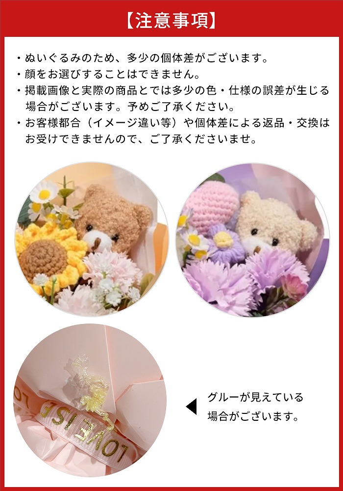 ●手作業で生産しているため、お花の位置が写真と全く同じにならない