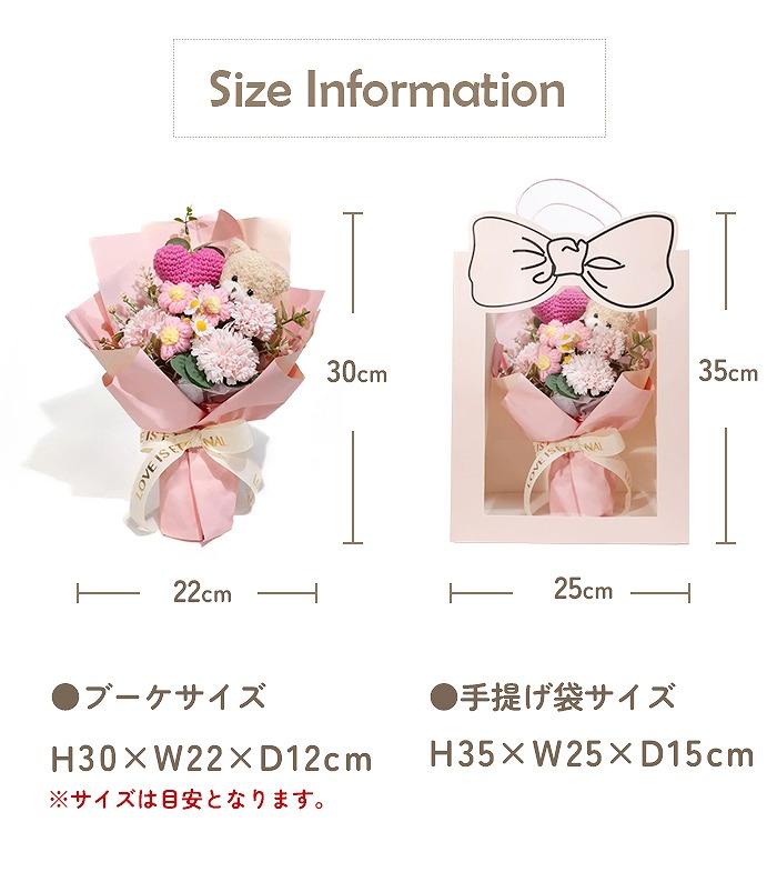 ●ブーケサイズ:約H30×W22×D12cm ※おおよその目安です