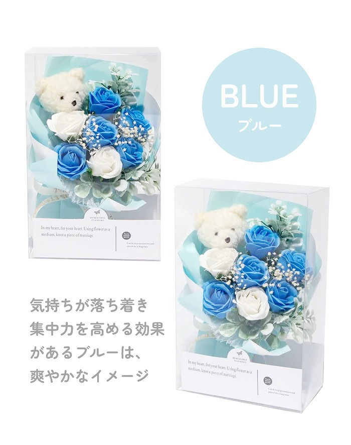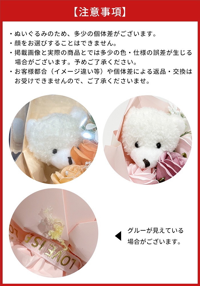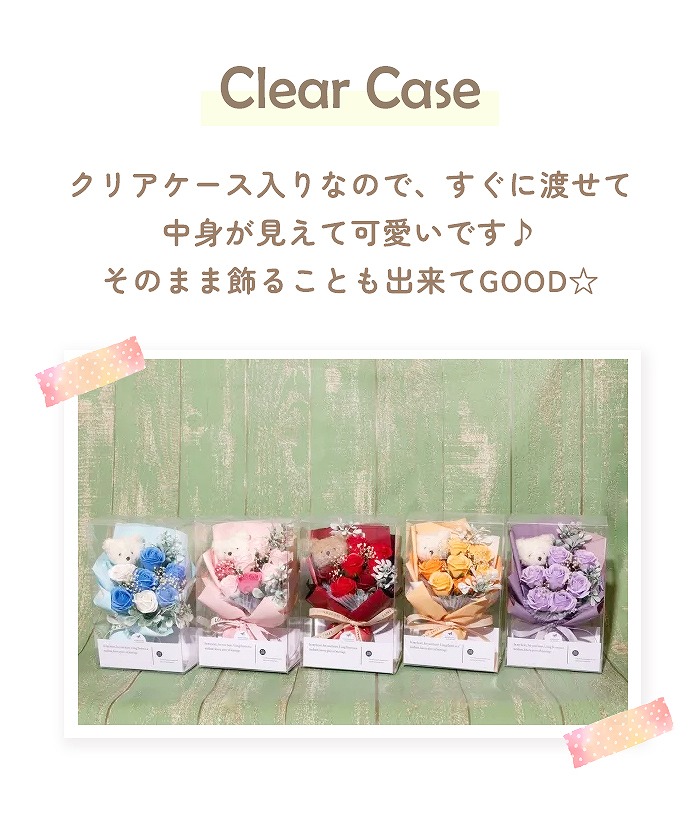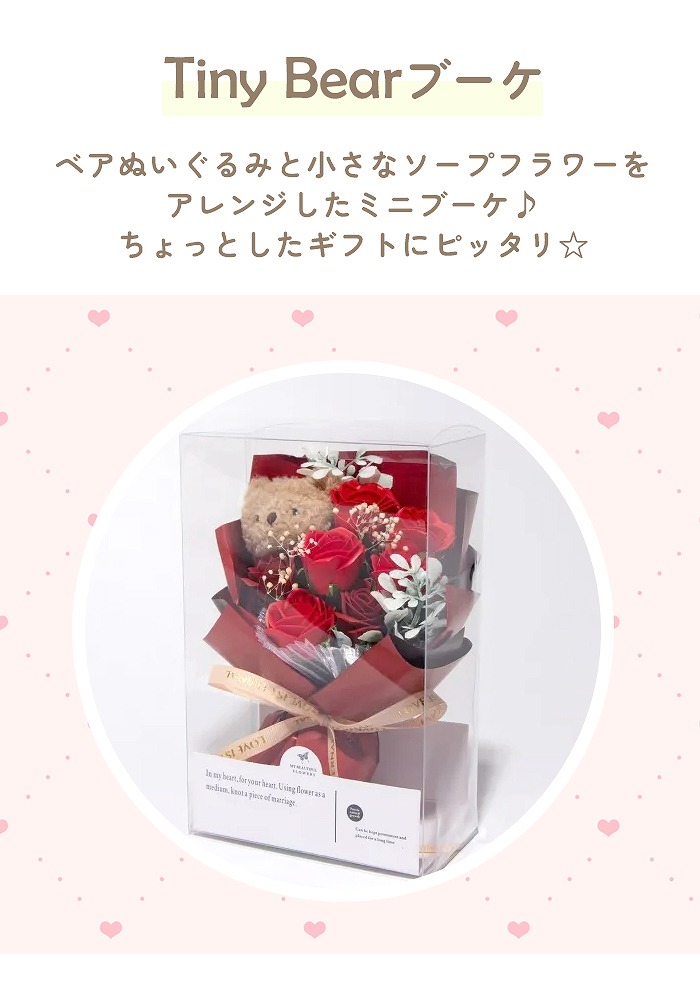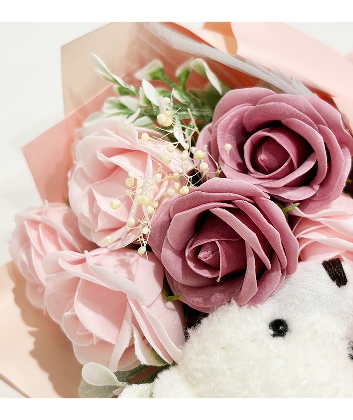 ベアぬいぐるみと小さなソープフラワーを