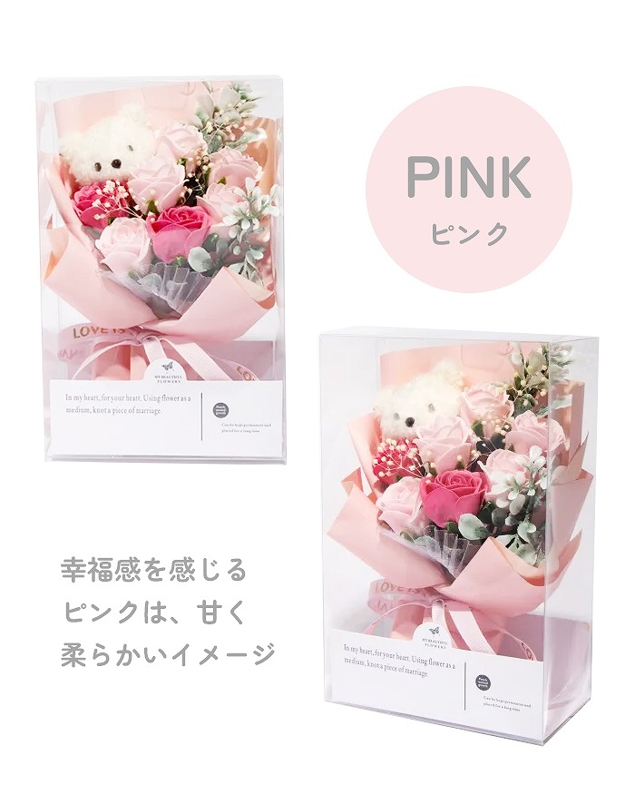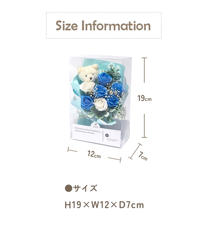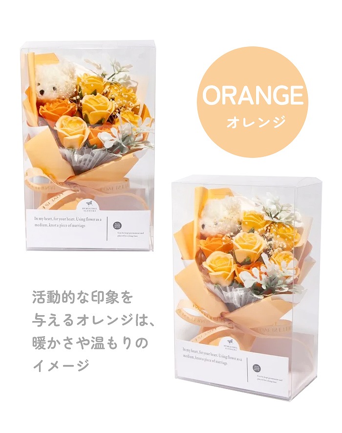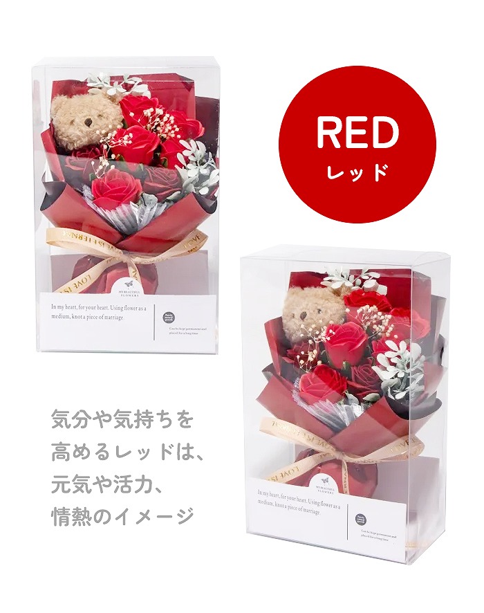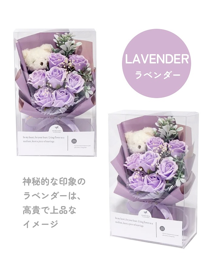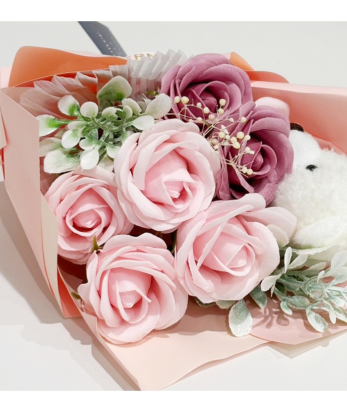 ベアぬいぐるみと小さなソープフラワーを