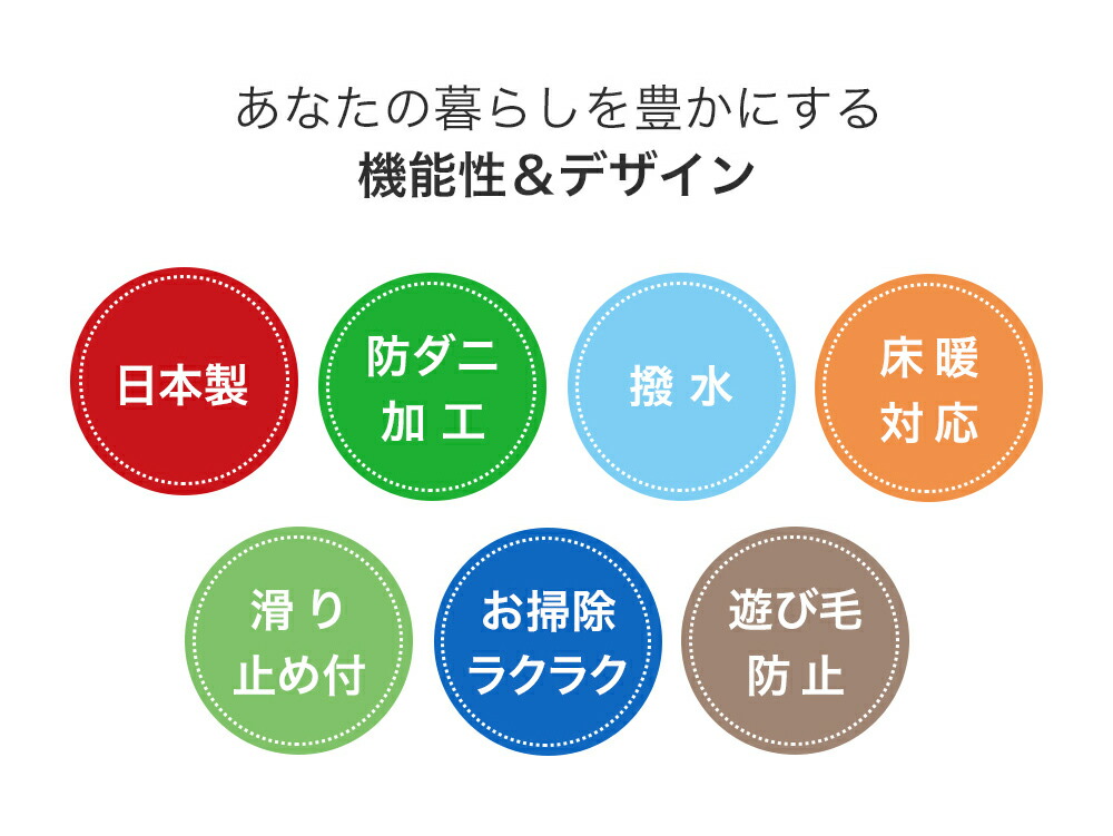 | 機能性 | 防ダニ、撥水、床暖対応、滑り止め、F☆☆☆☆ |