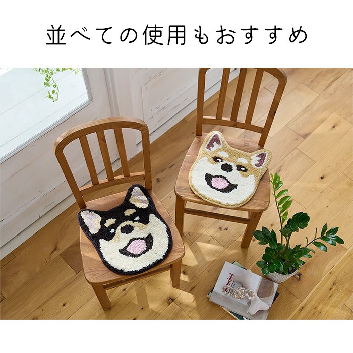 【日本製】柴犬 シバイヌ マット 新色 チェアパッド チェアマット 40×33cm ふわふわ イヌカオ マット 犬柄 犬 いぬ 犬雑貨 洗える 防ダニ 滑り止め 可愛い 床暖房対応 秋冬 母の日 黒柴sumi006