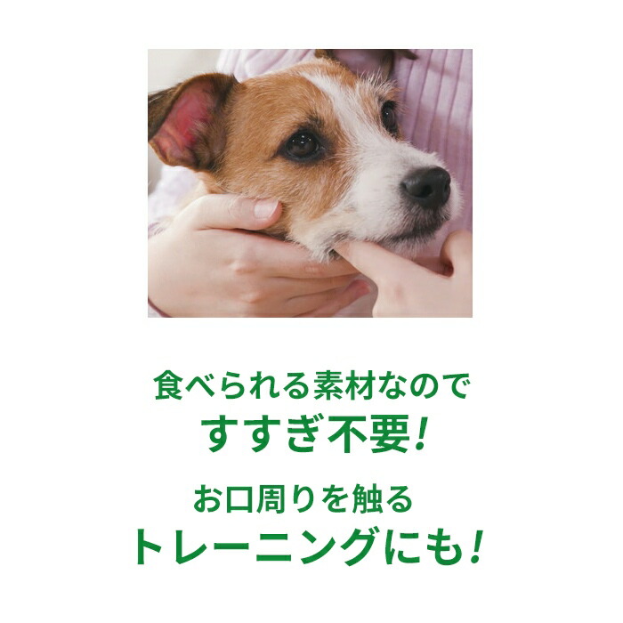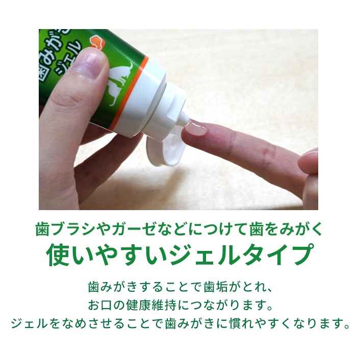 歯ブラシやガーゼなどにつけて歯をみがきます。食べられる成分ですので、すすぎは不要です。最初はなめさせることで、歯みがきに慣れやすくなります。歯に塗って使用することもできます。