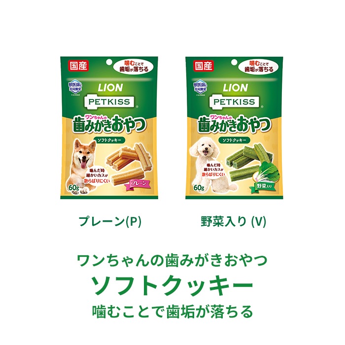 やわらかいクッキーを噛むことで歯垢除去。