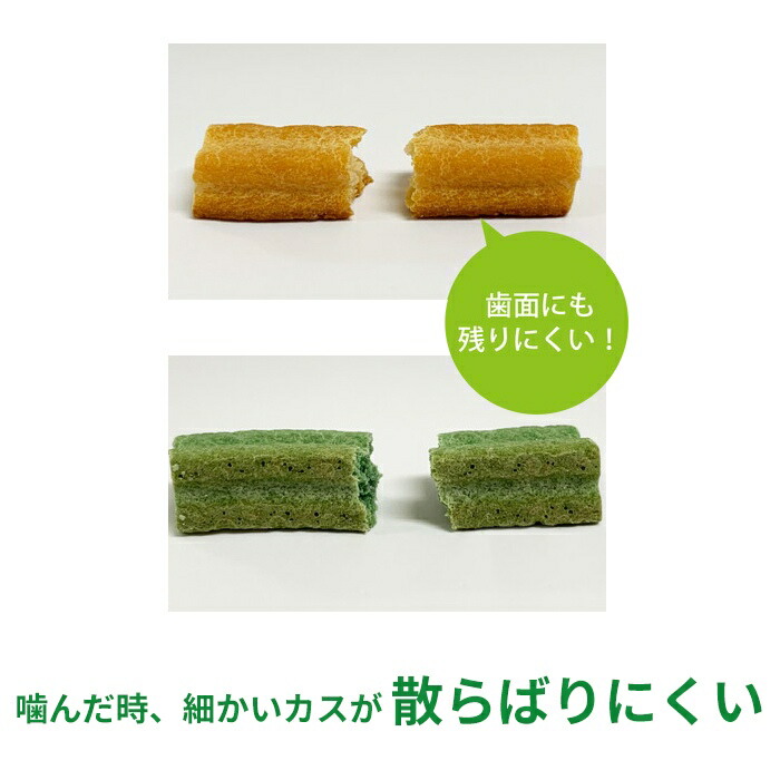 噛んでもやわらかいクッキー生地が砕けないで、歯の表面の歯垢をしっかり掻きとります。