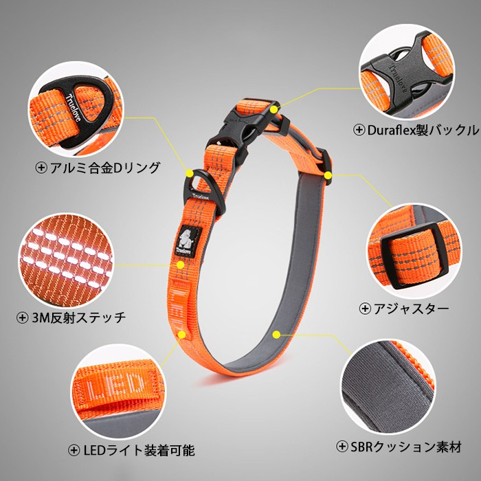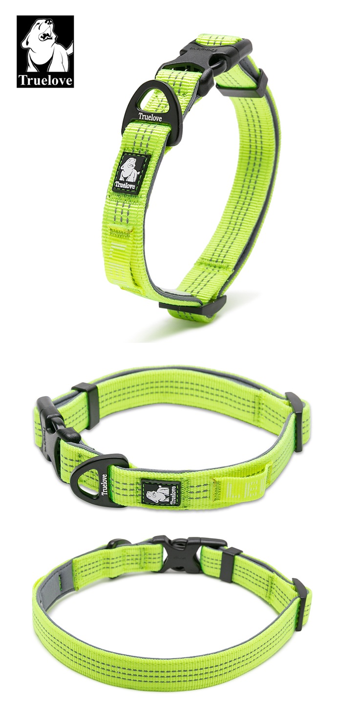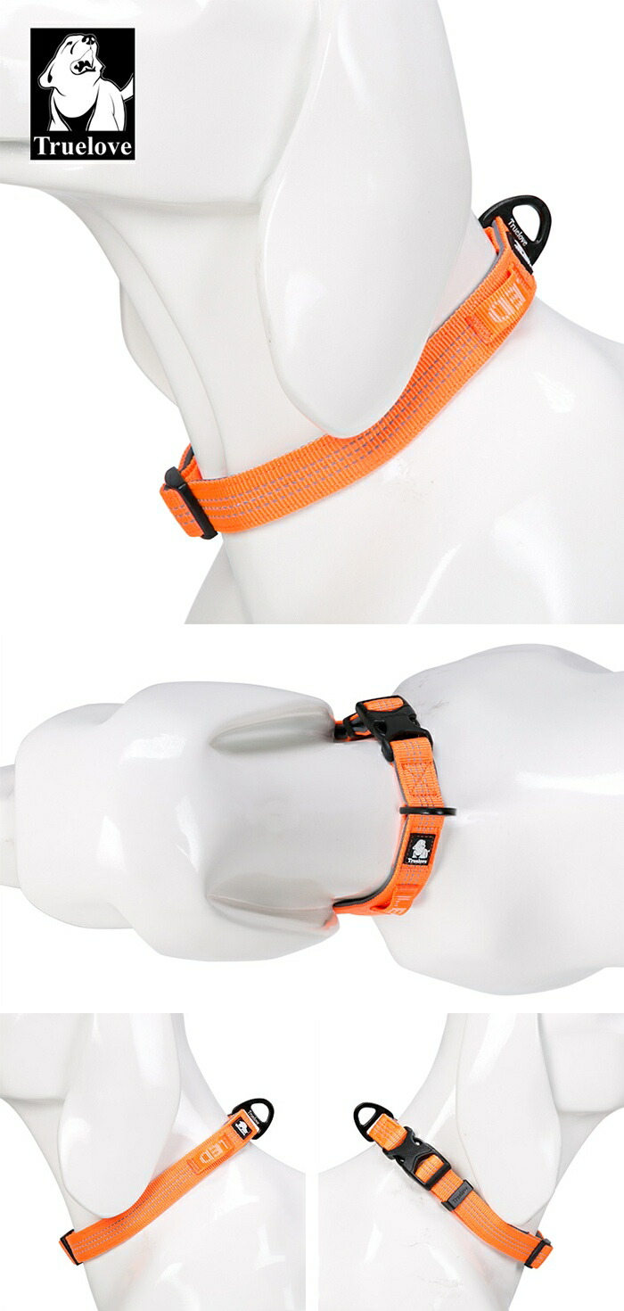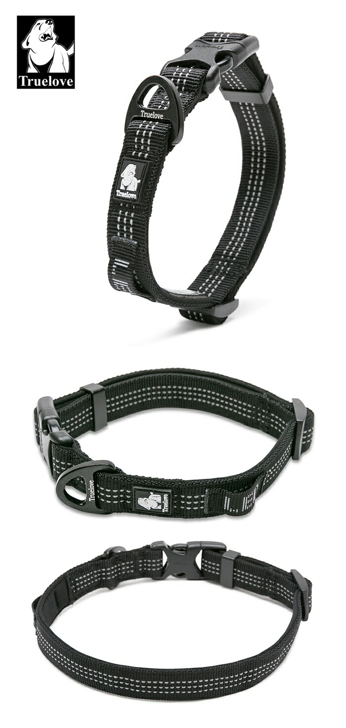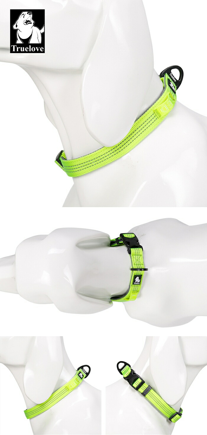 Truelove 首輪 犬 小型犬 中型犬 大型犬 定番 3M反射 軽量 丈夫 アルミ合金Dリング 調整可能 Duraflex製バックル 幅1.5cm 幅2cm 幅2.5cm 夜のお散歩 安全 高密度tlc5271